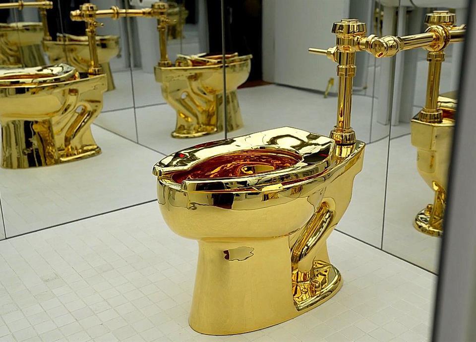 Subastan obra de un retrete de oro sólido en 12.1 mdd