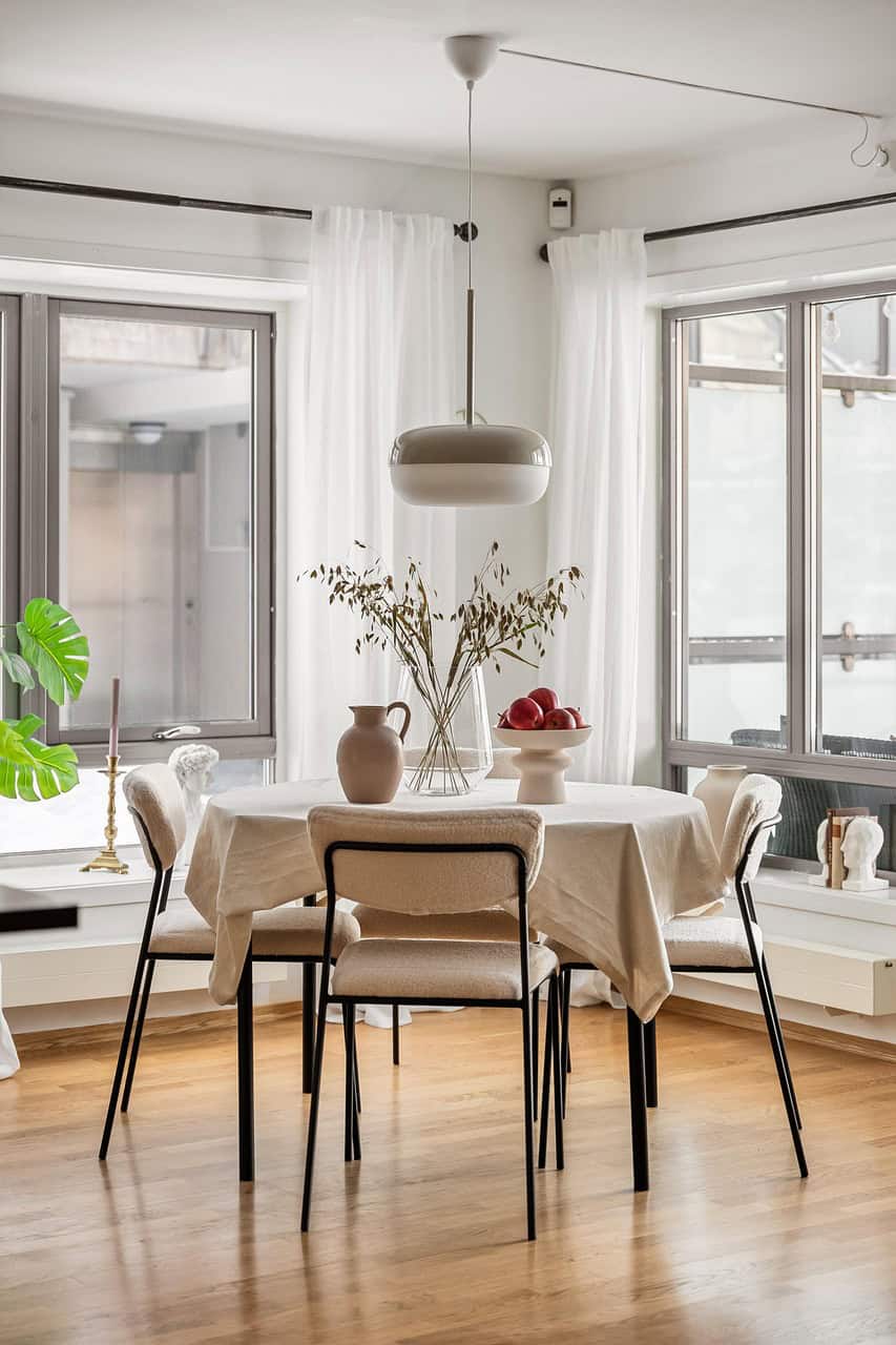 El blanco, por ejemplo, es un color que refleja mucha luz y combinado con la apertura de ventanas despejadas hace que una vivienda se vea más luminosa y espaciosa.