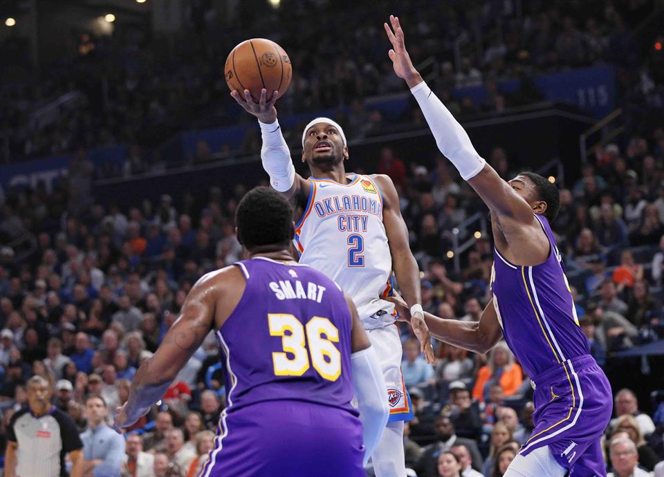 Shai Gilgeous-Alexander anotó 30 puntos y repartió nueve asistencias en tres cuartos, y el Thunder de Oklahoma superó 121-92 a los Lakers de Los Angeles 121-92 anoche