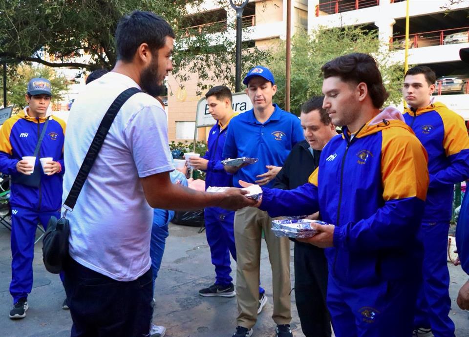 El conjunto que representa a la UANL en la Liga Mayor de la Onefa llevó comida a familiares y pacientes afuera del Hospital Universitario, tras comprometerse a entregar órdenes de tacos por cada anotación terrestre de su temporada campeona en la organización nacional estudiantil de futbol americano y universitario de México.