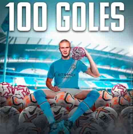 Erling Haaland se convirtió en el jugador que ha marcado 100 goles en el menor tiempo posible desde su llegada al futbol inglés en 2022.