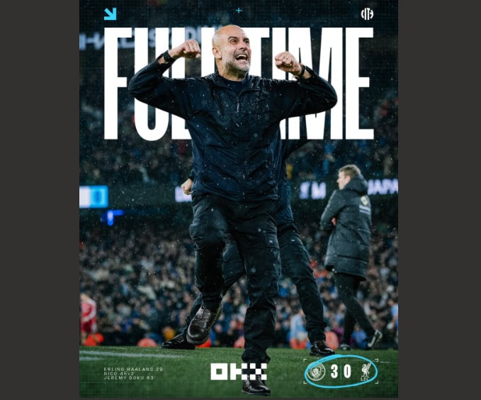 Manchester City superó 3-0 en casa al Liverpool y se acercó en puntos al líder Arsenal en la Liga Premier de Inglaterra.