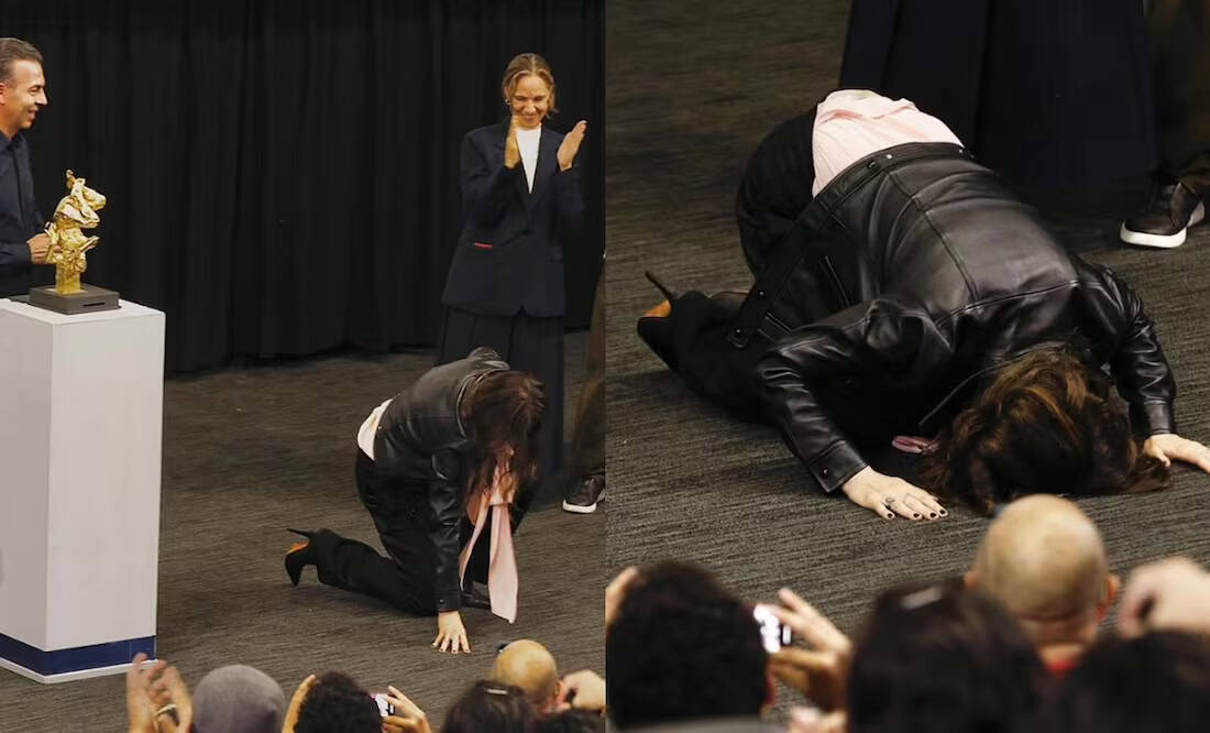 La noche del sábado será recordada como la vez en que Juliette Binoche, ganadora del Oscar por su trabajo en "El paciente inglés" y considerada una de las actrices más solventes de los últimos años, no solamente se arrodilló, sino hizo una reverencia tocando con su cara el suelo.