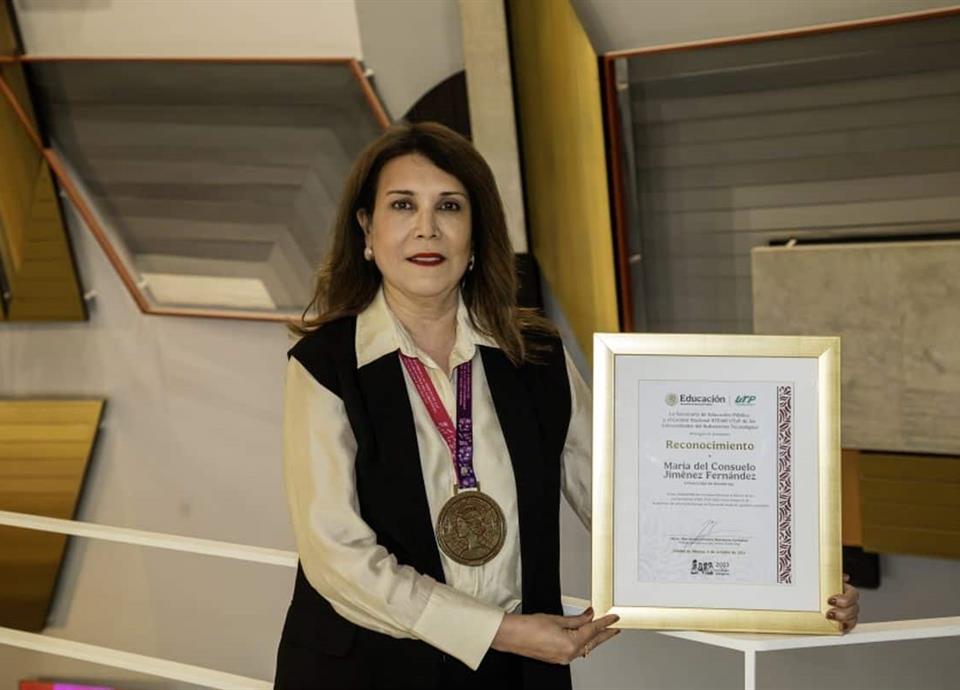 La profesora Consuelo Jiménez Fernández recibió la Presea Nacional al Mérito de las Universitarias STEM, otorgada por la Secretaría de Educación Pública.