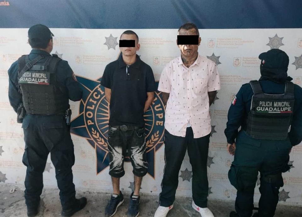 Una aparente falta al reglamento de Tránsito provocó que dos hombres fueran detenidos por la Policía de Guadalupe en portación de armas cortas, droga y una bácula gramera.