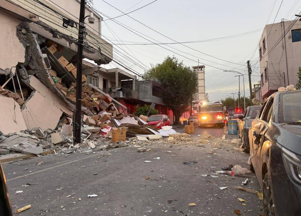 Como si fuera una zona de guerra, fue como terminó una de las calles de la Colonia Nuevo Repueblo, en Monterrey, después de que se produjera una explosión en un almacén de suministros químicos.