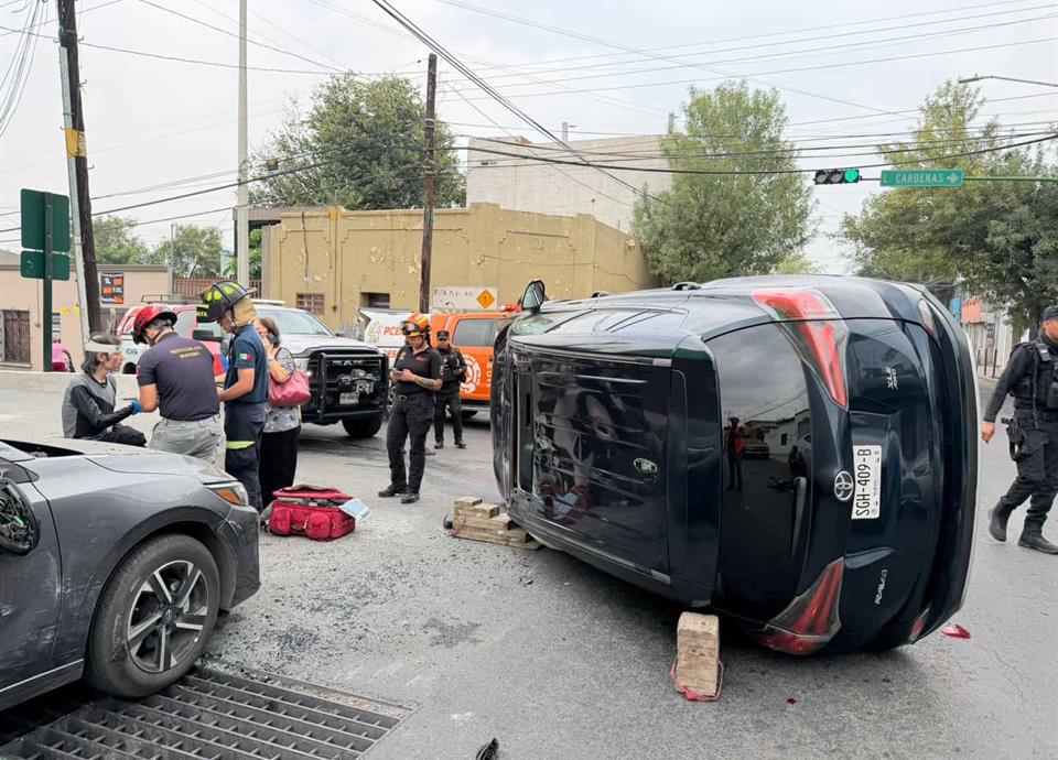 Alrededor de las 11:25 horas se registró el accidente, en el cruce de las calles San Luis Potosí y 5 de Febrero, donde el vehículo se impactó con otra unidad y luego terminó volcándose.