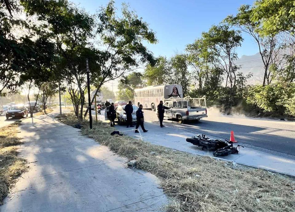 Personal de Protección Civil Santa Catarina, acudieron hasta ese punto para atender al lesionado, miles tras que personal de movilidad abanderaban la zona y deslindaban responsabilidades.