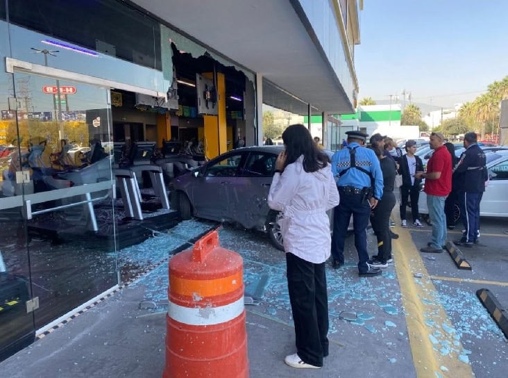 El susto de su vida se llevaron los clientes de un gimnasio ubicado en un centro comercial de Escobedo, cuando un menor impactó su vehículo contra la fachada del local.