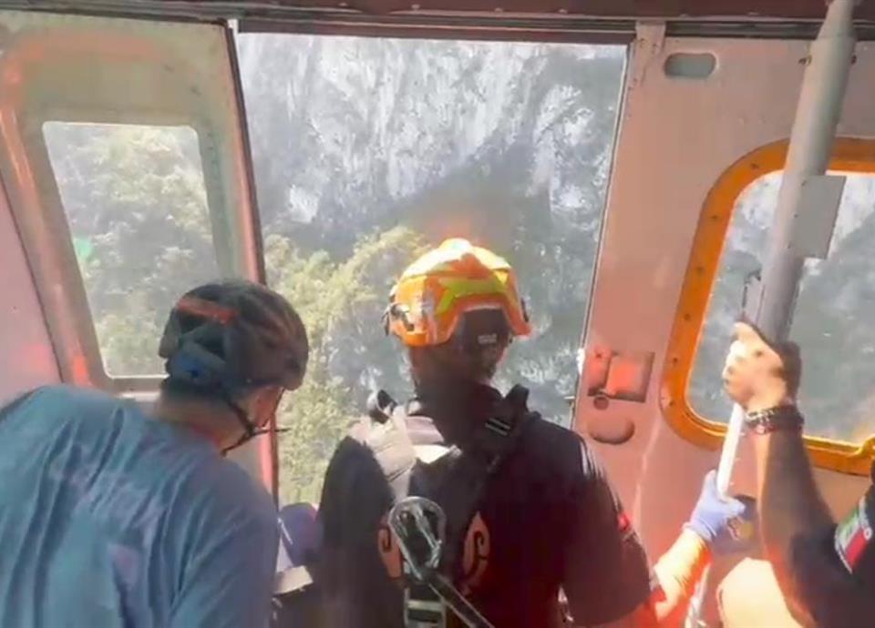 Debido a que el lugar donde cayó el excursionista era peligroso, los elementos de Protección Civil que iban en ascenso, se guiaban por medio de sus compañeros del helicóptero.
