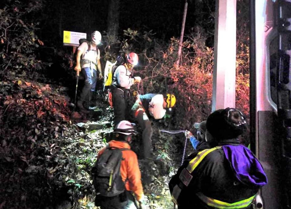 Con equipo de rescate de montaña, víveres e hidratación, al rededor de las 23:00 horas de ayer se hizo contacto con la persona lesionada por caída.