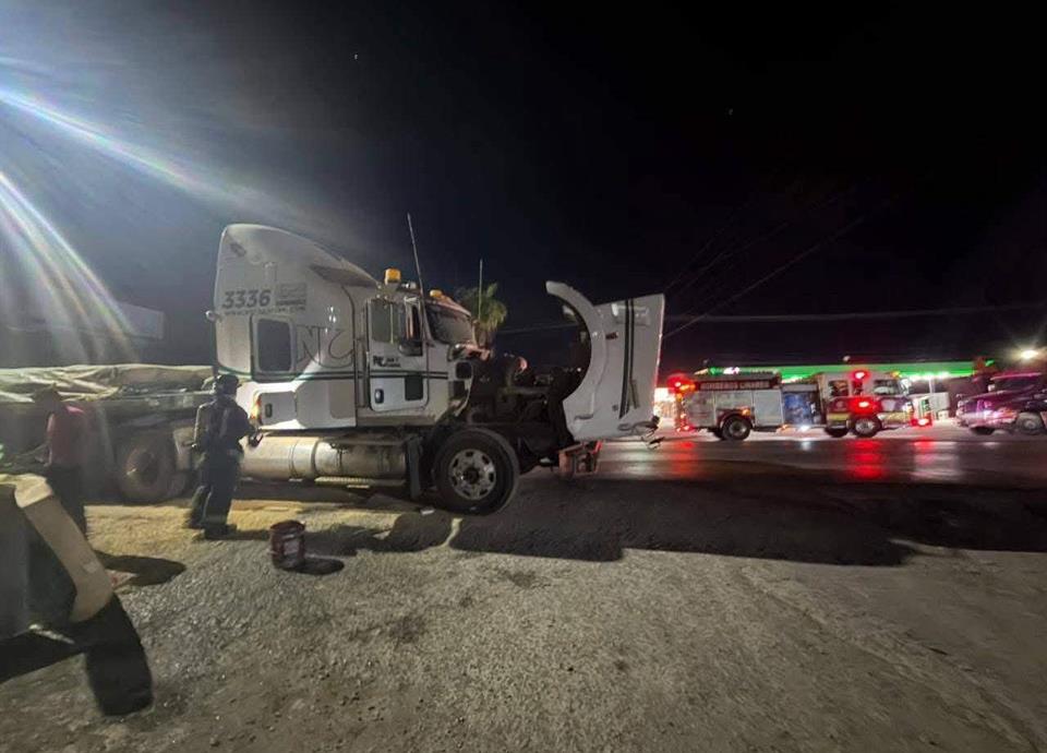 Elementos de la Central de Bomberos de Linares evitaron una tragedia al controlar el incendio de un tráiler estacionado frente a una gasolinera.