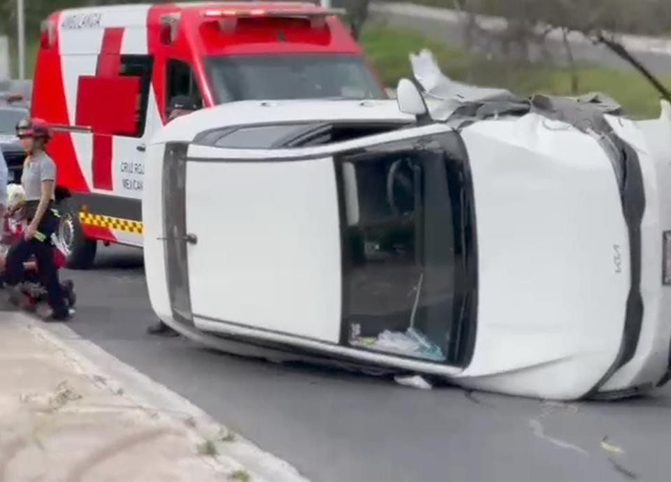 La conductora de un vehículo resultó lesionada luego de volcar ayer en la zona de Cumbres, al poniente de Monterrey, después de presuntamente dormitar.
