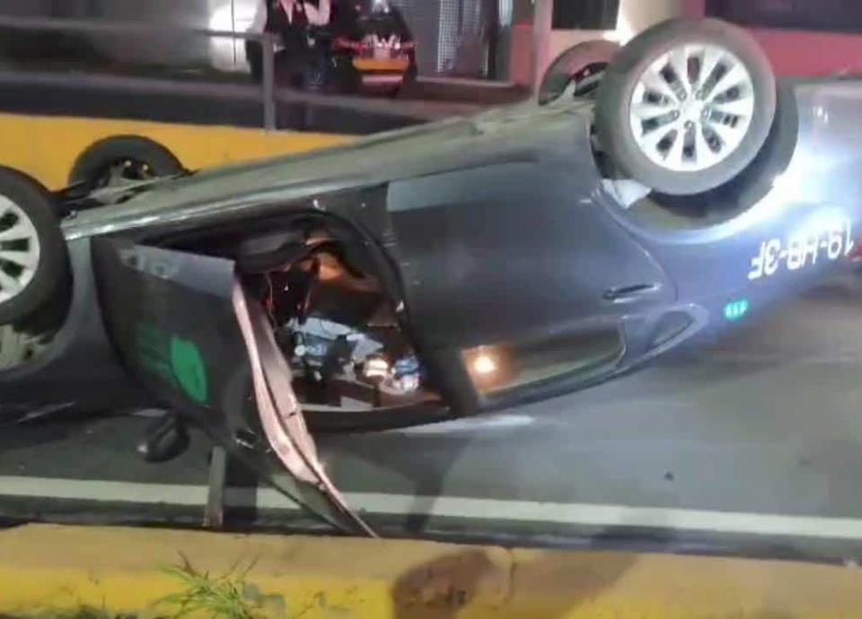 La unidad volcada es un auto KIA, que corresponde a empresa de servicio de "taxi de aeropuerto", circulaba por los carriles laterales al poniente, para luego terminar volcado en un desnivel del mismo sentido.