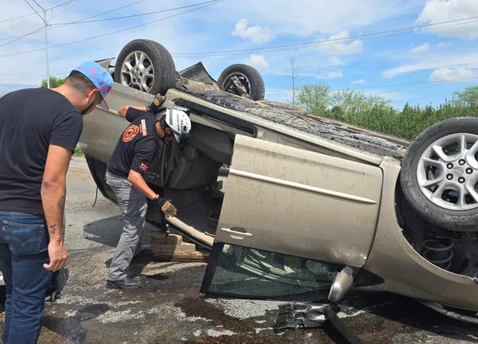 La volcadura de una camioneta miniván en la Autopista al Aeropuerto, dejó al conductor y su acompañante lesionados, ayer en el municipio de Pesquería.