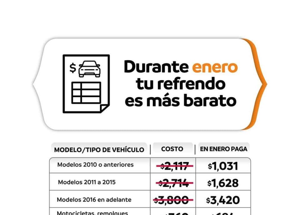 Quienes acudan los primeros días del año, resaltó el ICV, gozarán de un descuento del 10 por ciento en refrendo.