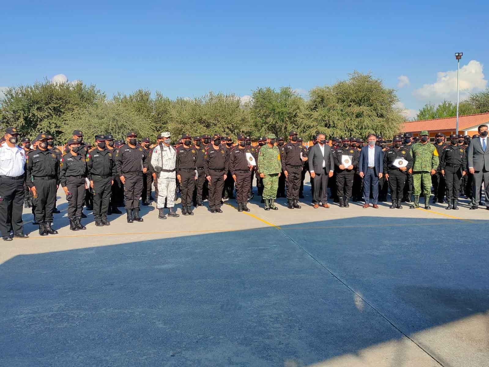 En el Campo Policial No 1, en el municipio de Escobedo, el gobernador Jaime Rodríguez Calderón encabezó la ceremonia en la que se entregó un reconocimiento a los elementos con más de una década de antigüedad.