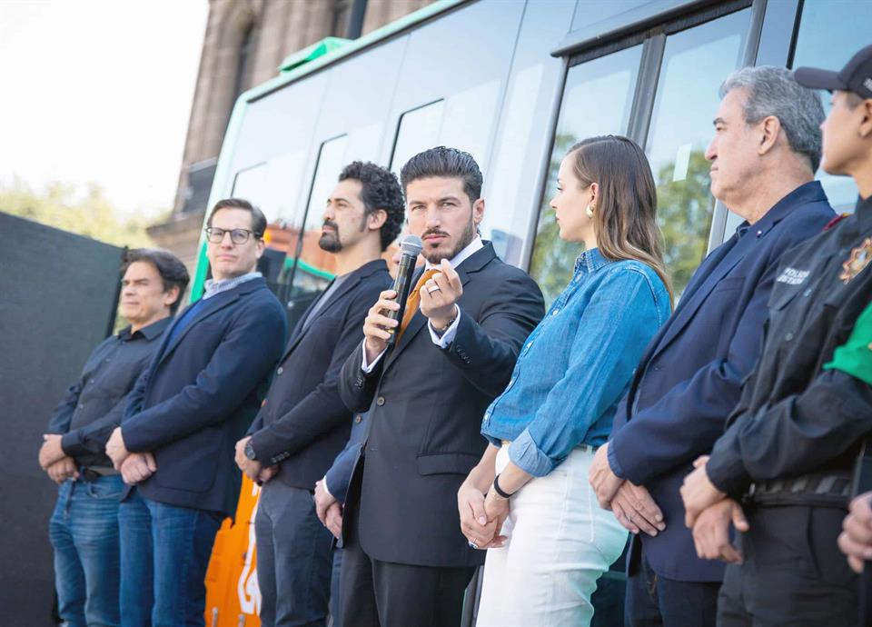 En la Explanada Cultural del Lab Nuevo León, el Jefe del Ejecutivo Estatal supervisó la salida de los nuevos autobuses.