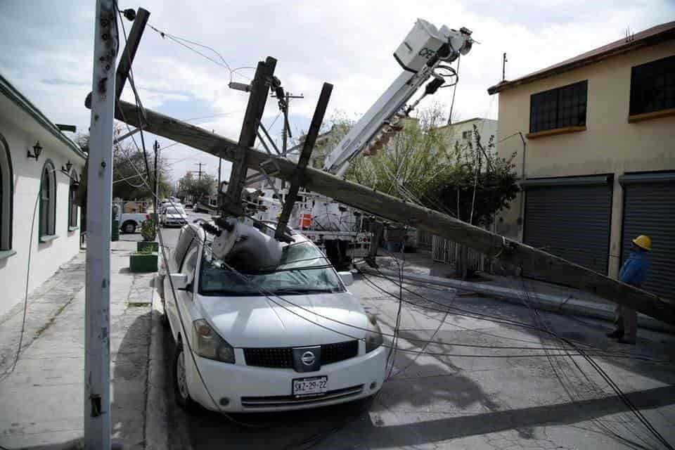 Entre los reportes que han tenido que ser atendidos está el ocurrido en las calles de sobre Río Guadalquivir y Río Zacatecas, un poste con transformador cayó sobre una camioneta y la destruyó por completo.