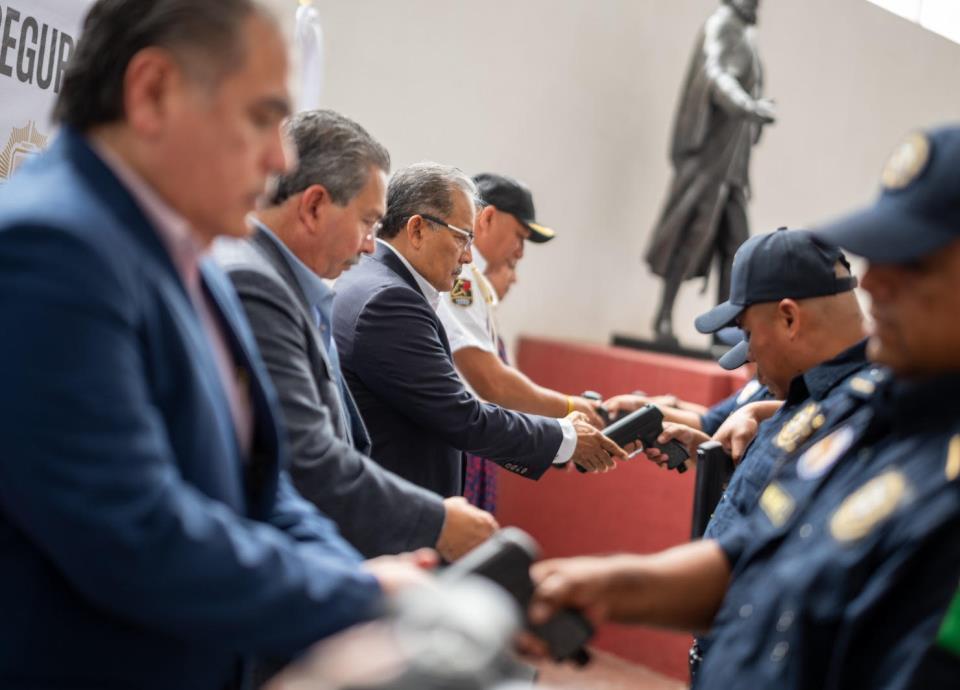 Un total de 45 armas no letales "S2" que permitirán a los policías de Proxpol inmovilizar de inmediato a agresores mediante el uso de cápsulas de gas pimienta, brindando así una respuesta rápida y segura para la ciudadanía, fueron entregadas por el alcalde de Escobedo, Andrés Mijes Llovera.