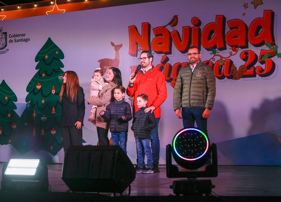 Con la magia y la ilusión que caracteriza a la temporada decembrina, el alcalde de Santiago y su familia encabezaron el tradicional encendido del Pino de la Navidad Mágica, que ilumina la Plaza Ocampo desde ayer y hasta el próximo 6 de enero.