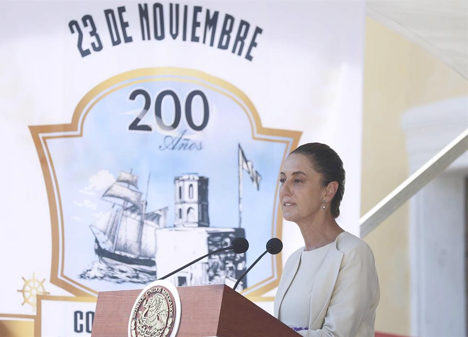 Al encabezar en el puerto de Veracruz la conmemoración del Bicentenario de la Consolidación de la Independencia en el mar, acompañada del secretario de Marina, el almirante Raymundo Pedro Morales Ángeles, la Mandataria federal advirtió que la historia del país demuestra que jamás han triunfado los proyectos que buscan apoyarse en la fuerza, la violencia o el respaldo extranjero para imponerse.