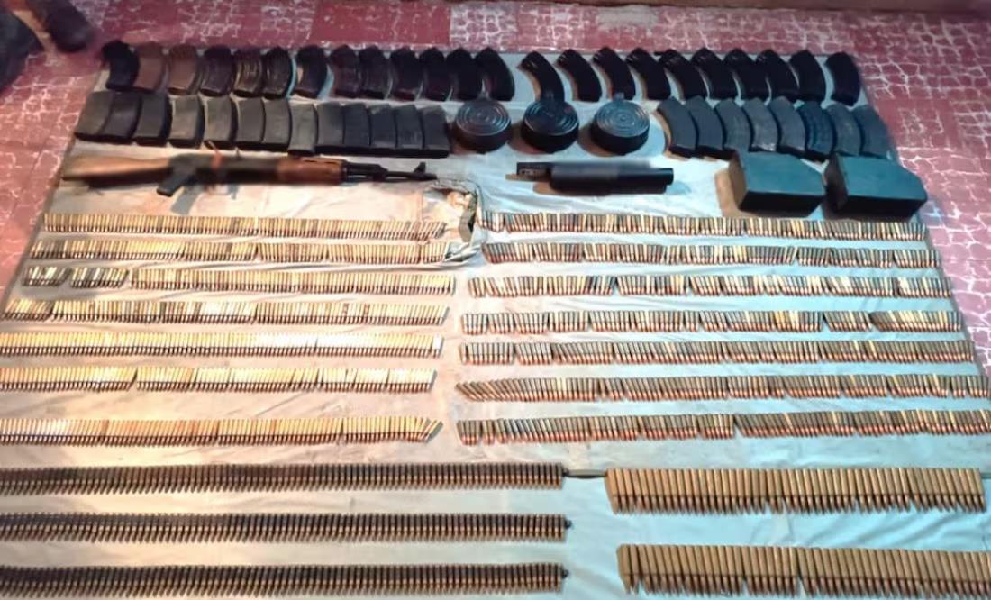 En Aldama, Chihuahua los efectivos encontraron tres armas largas, cuatro cargadores, 657 cartuchos, un chaleco táctico y un vehículo.