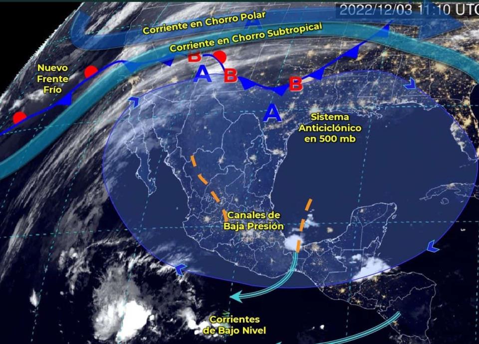 CIUDAD DE MÉXICO.- Este sábado 3 de diciembre se espera la entrada del Frente Frío Número 13 por la frontera norte de México y en interacción con la humedad de la corriente de chorro subtropical ocasionará lluvias puntuales fuertes en Baja California