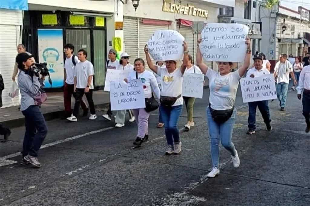 Vestidos de blanco, con flores y cartulinas, los integrantes del Sindicato Único de Trabajadores y Empleados Municipales y del Sindicato de Aseo Público en Uruapan marcharon hacia la pérgola de Lázaro Cárdenas.