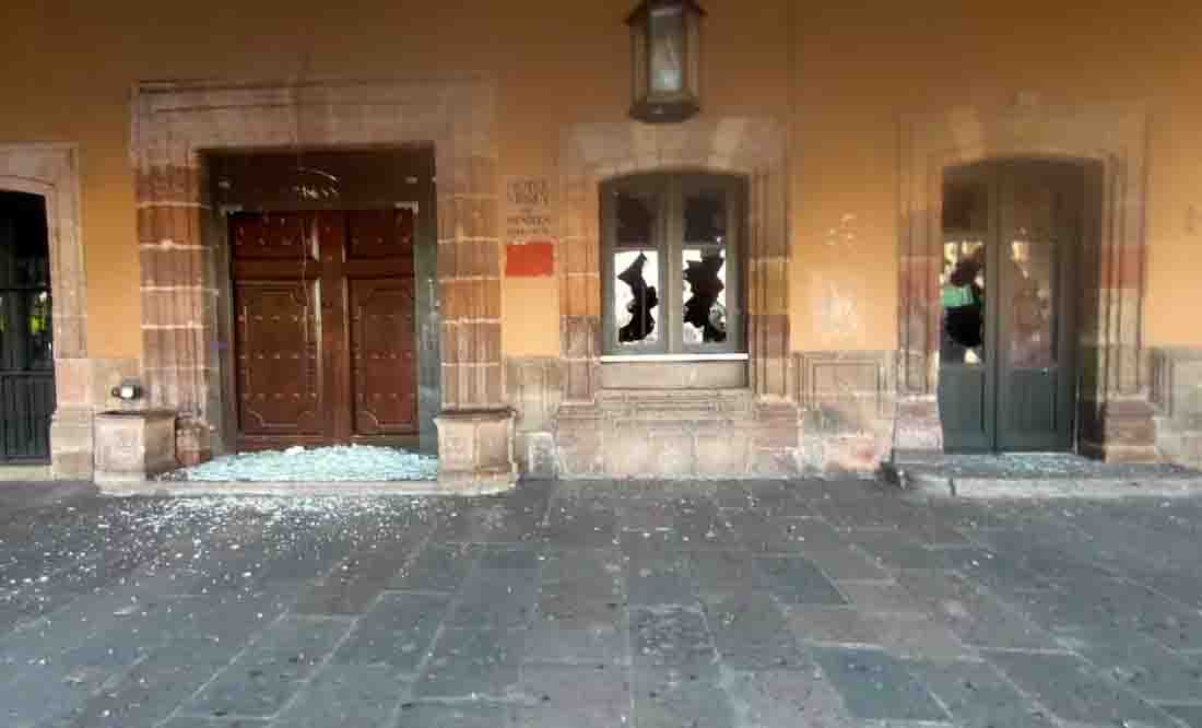 Normalistas vandalizan Palacio de Justicia en Morelia