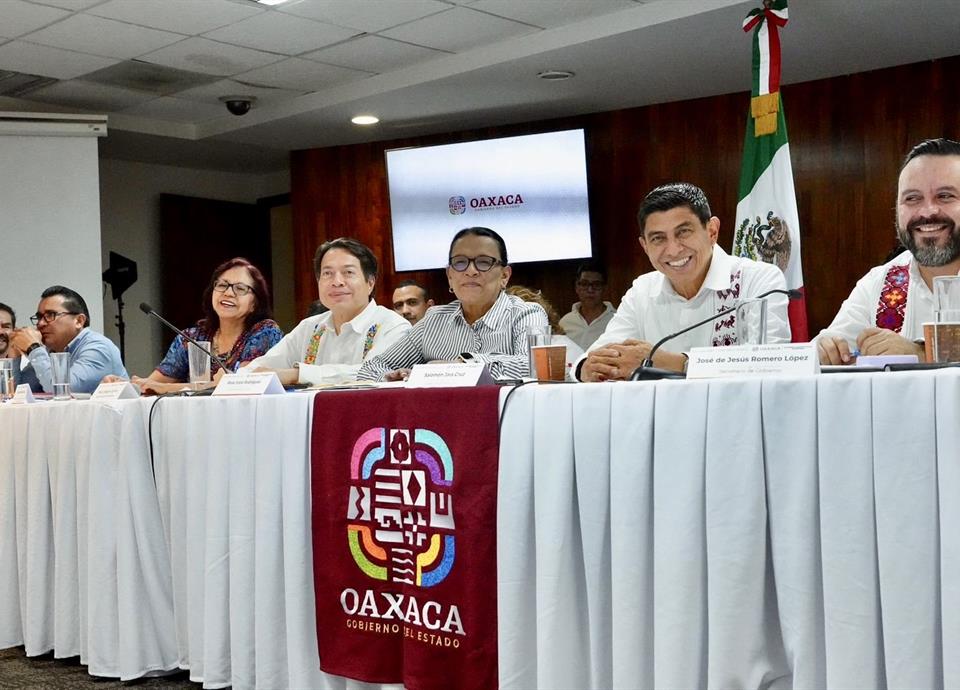 Rosa Icela Rodríguez, secretaria de Gobernación, puntualizó el encuentro en Oaxaca con los docentes "para dar seguimiento a los acuerdos en favor de la educación de niñas y niños, adolescentes y jóvenes".