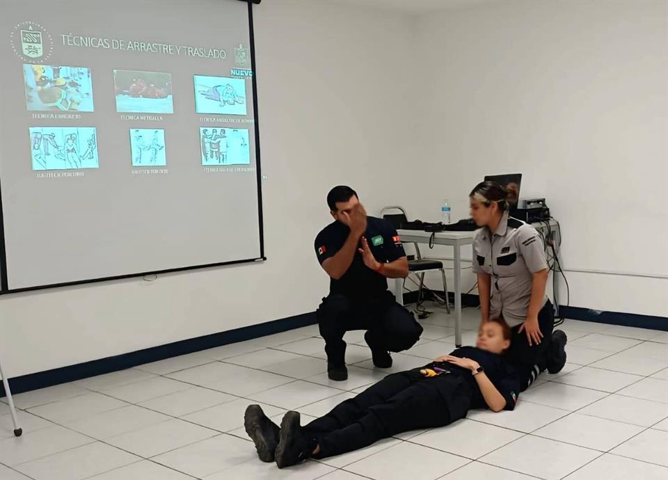 Aplicación de protocolos, primeros auxilios y contención de la violencia, son de los temas abordados durante la capacitación.