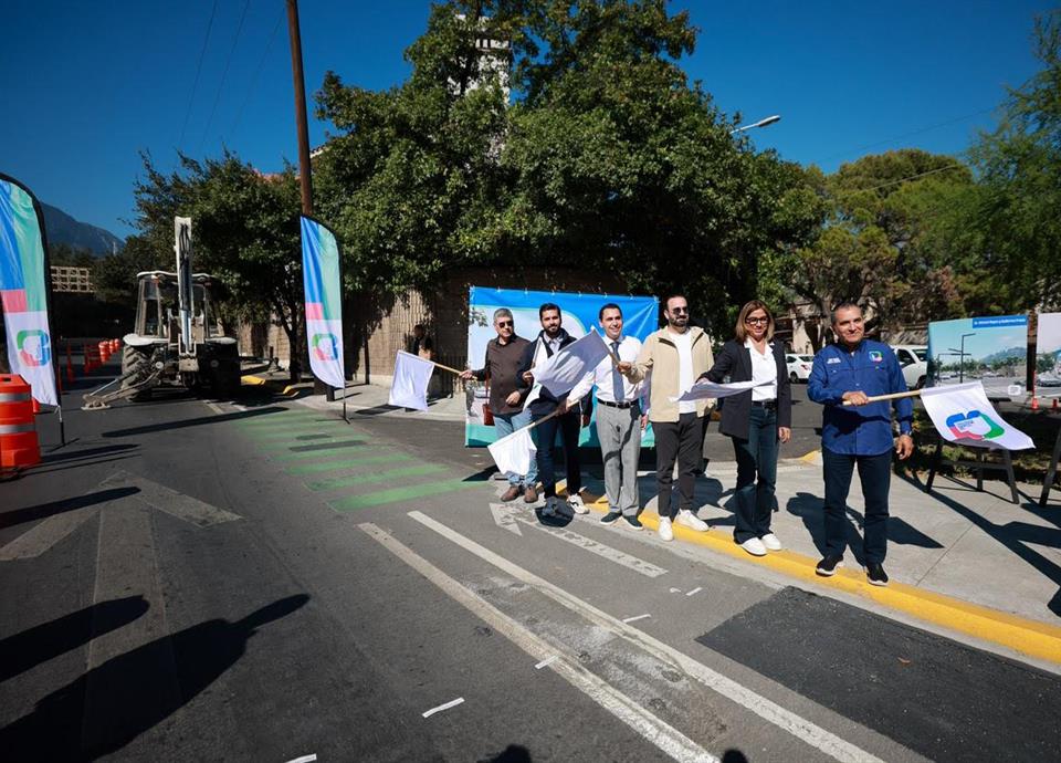 Mauricio Farah Giacomán, alcalde De San Pedro dio el banderazo de inicio en el cruce de Alfonso Reyes y Olimpiadas, acompañado de funcionarios municipales.