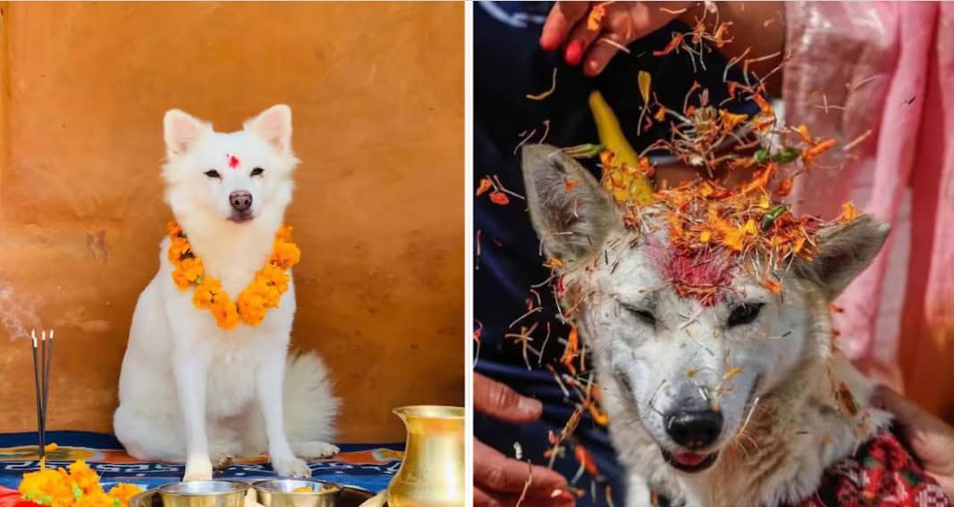De acuerdo con el portal Patas en casa, durante esta festividad, perros de distintas razas, colores y tamaños son decorados con guirnaldas de flores alrededor del cuello y se les pone una tika roja en la frente, como parte de un ritual especial. En la cultura nepalí, la tika es un punto de color rojo que se coloca en la frente y simboliza respeto, dignidad y bendición.