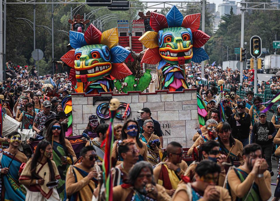 CIUDAD DE MÉXICO.- El Gran Desfile de Día de Muertos, que está por cumplir una década, volvió a convocar a cientos de miles de capitalinos, turistas nacionales e internacionales sobre Paseo de la Reforma