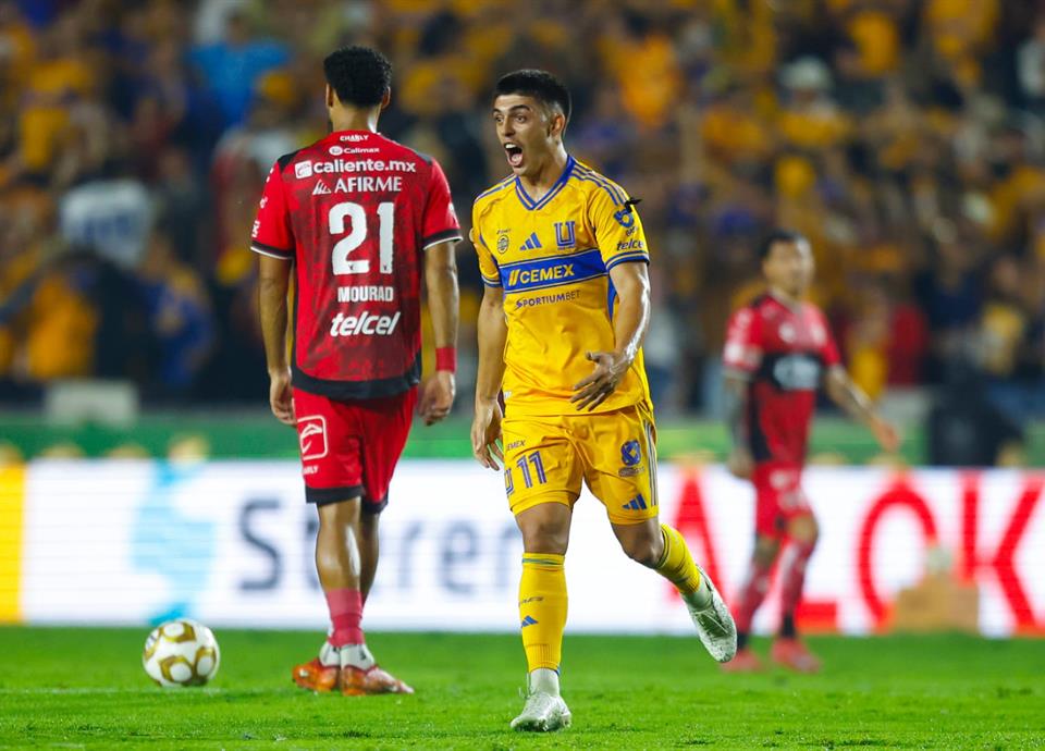 MONTERREY.- Tigres superó 5-0 en casa a Xolos en los cuartos de final de vuelta y con un global de 5-3 avanzó a las semifinales el conjunto felino en este torneo Apertura 2025