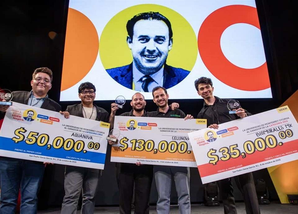 Una iniciativa enfocada en transformar residuos de piña en materias primas biodegradables, un sistema de monitoreo hídrico con inteligencia artificial y energía solar para evaluar la calidad del agua y un proyecto que integra murales vivos con musgos y líquenes en muros deteriorados fueron las propuestas premiadas en los tres rubros de la Cátedra Jorge L. Garza UDEM Inspira 2025.