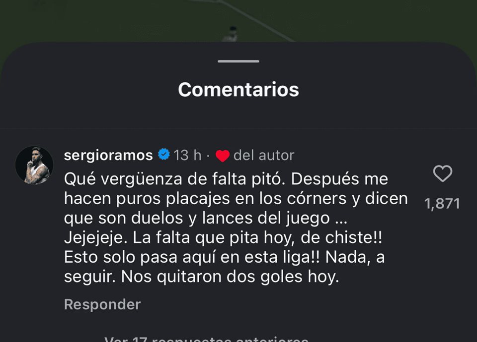 En ese partido, Ramos había anotado dos goles, pero uno se le anuló por un supuesto fuera de lugar del antes mencionado y el otro por una falta previa.
