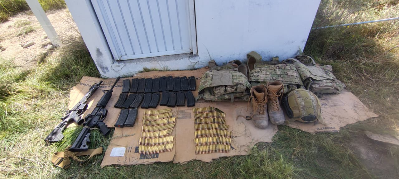 Al ser revisados, encontraron en su interior dos fusiles de asalto, 380 cartuchos hábiles, 21 cargadores, tres chalecos tácticos, cinco cascos y cuatro placas balísticas, entre otros implementos.