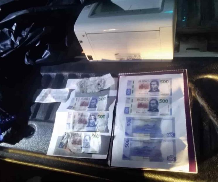 Los uniformados aseguraron al señalado una máquina para imprimir y hojas con imágenes de billetes ya impresos.