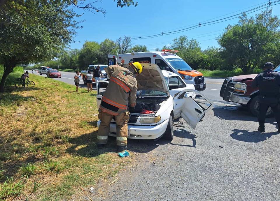 Paramédicos de la Dirección de Protección Civil de General Terán, trasladaron a los lesionados a un hospital.