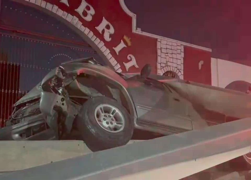 La unidad accidentada es una camioneta Dodge Durango, que se impactó contra un señalamiento de bandera doble y lo derribó.