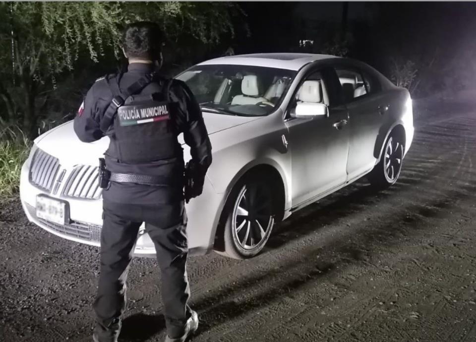 Elementos de la Secretaría de Seguridad y Vialidad de Salinas Victoria aseguraron un vehículo con reporte de robo que estaba abandonado.
