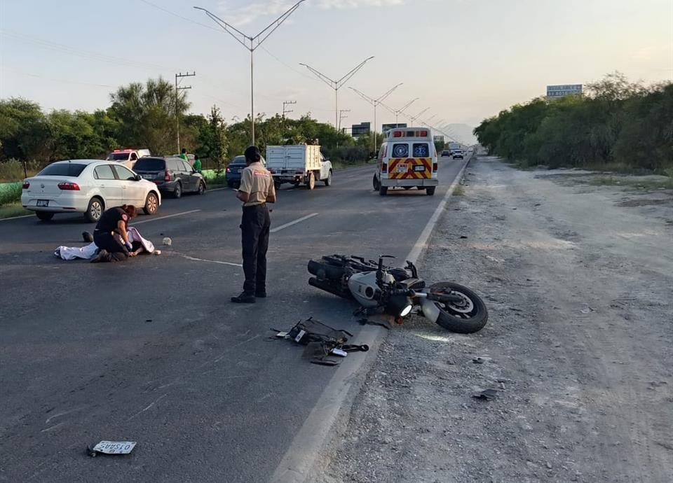 El motociclista iba por la autopista al Aeropuerto Internacional de Monterrey, cuando fue impactado por el conductor de un vehículo Ford Focus.