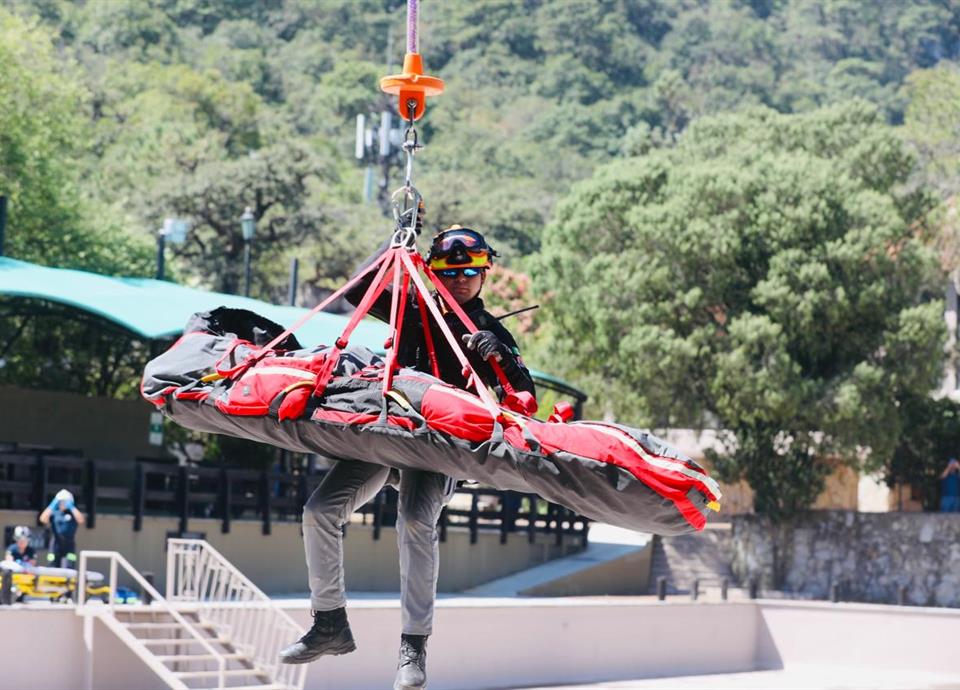 Una vez que se recató a la persona, en la parte baja del parque ya lo esperaban rescatistas de PC de San Pedro, quienes en una ambulancia lo trasladaron al Hospital Christus Muguerza para su atención debido a una probable fractura de cadera.