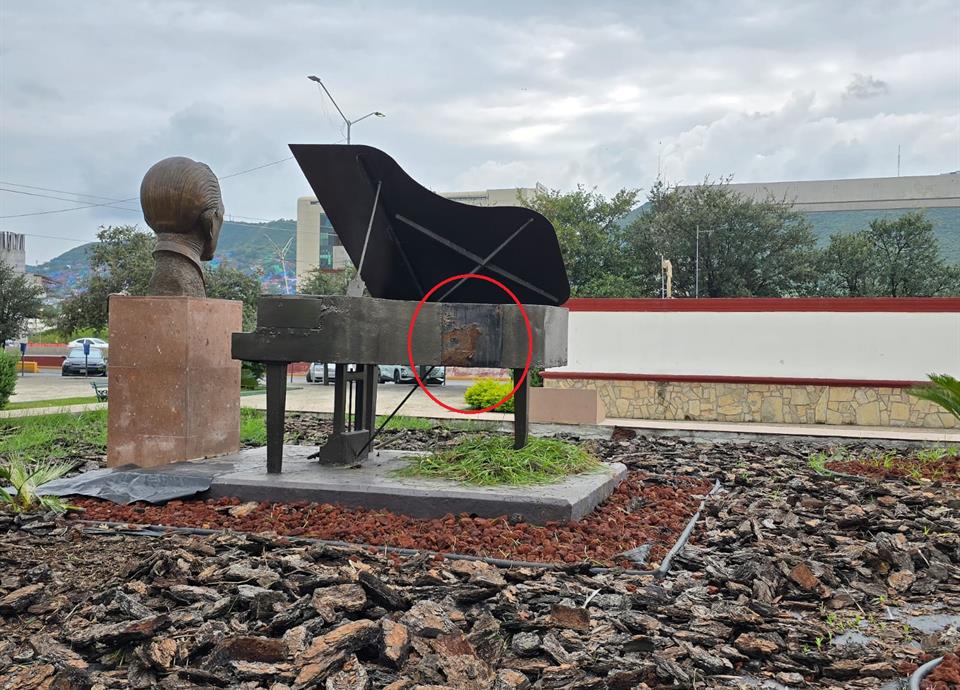 Elementos de la Policía de Monterrey realizaban un recorrido de prevención y vigilancia, cuando observan a un masculino que con unas pinzas, estaba quitando la placa de acero de un piano donde está la estatua del cantautor Agustín Lara, en el área de la Plaza de los Compositores.