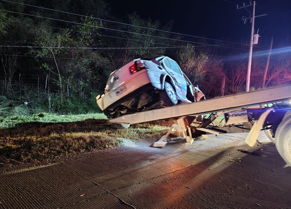 El accidente sucedió la madrugada de este martes en la Carretera Cadereyta– Allende, a la altura de San Bartolo, pues un Volkswagen Jetta blanco terminó volcado fuera de la carpeta asfáltica.