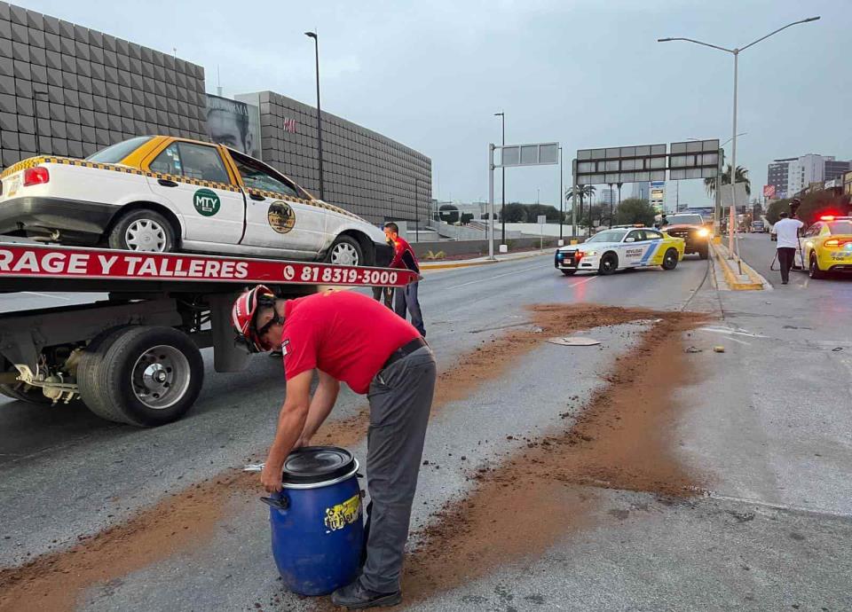 El conductor de un taxi resultó lesionado luego de volcarse en la Avenida Insurgentes, frente a Galerías Monterrey.