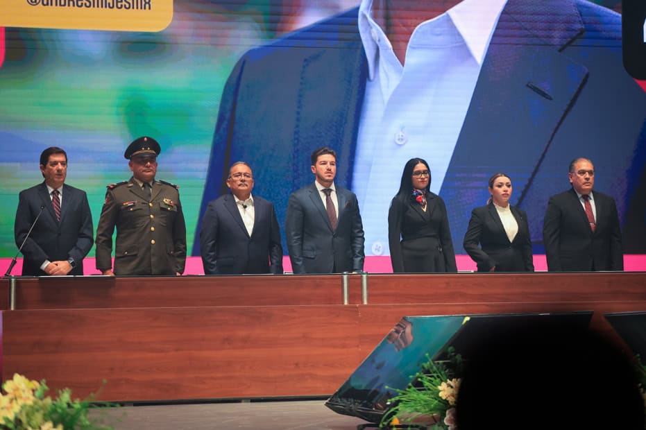 "Y hoy quiero decirles con mucho gusto que aprovechando la reconstrucción de la Línea 2, que hoy termina en Sendero, vamos a extender la línea hasta Las Torres, donde va a estar la nueva estación del tren y con ello darle mucha más movilidad a Escobedo".