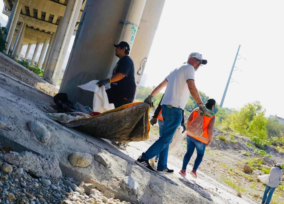 Fueron alrededor de 200 voluntarias y voluntarios lo que se sumaron a la limpieza del río Santa Catarina a la altura del Centro de Bienestar Animal de San Pedro.